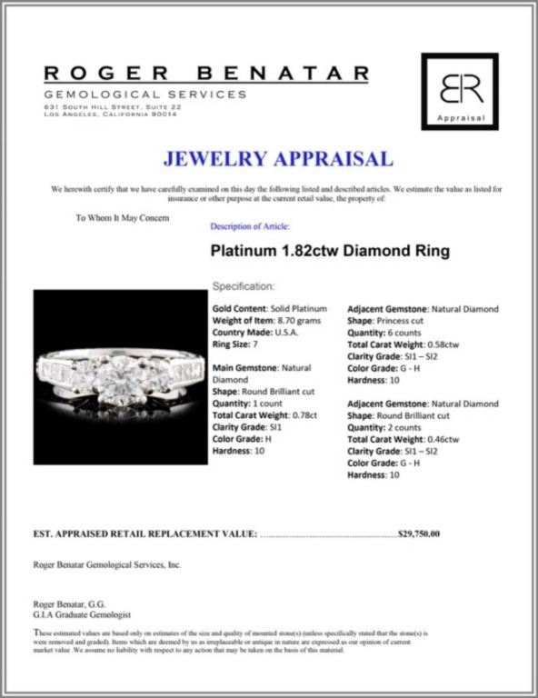 Regarding Appraised Jewelry and Loose Stones - Auctionfarm sends them out to a third party for Retail Replacement Value Appraisals, which are the most common. These types of evaluations are written for insurance needs. This would be the cost to replace the jewelry with an item of equal quality and kind, considered to be the current market price or the replacement value. This type of appraisal is done to protect you in the event of damage or loss of a valuable item. Our appraisals are conducted by independent 3rd Party appraisal firms that utilizes Certified GIA Gemologist. Appraisals should be used for verification of gemstone and/or metal weight, size, and grade only, not actual value. Appraisal value should be considered for insurance purposes only, not actual value, as price varies greatly from retail locations thru out the world. Items should not be purchased with the expectation to resell for appraisal price, or for profit.