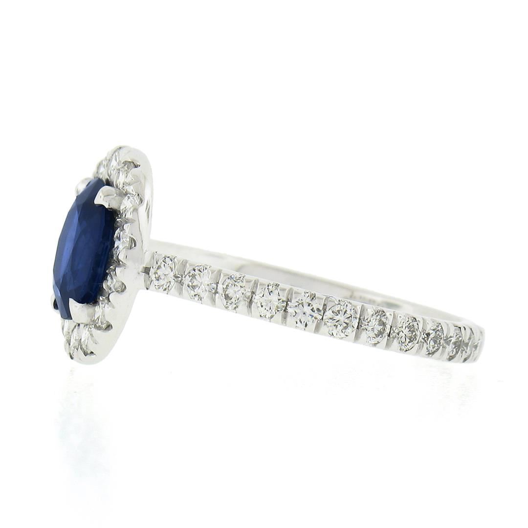 A new solid platinum ring, with 1 GIA graded oval cut natural sapphire (1.10ct), and 38 round cut natrual diamonds (F/G - VS1/VS2 ; 0.80ctw). The ring is size 7.5, weighs a total of 3.65 grams, and measures 11.4mm wide. Comes with all original relevant certifications.