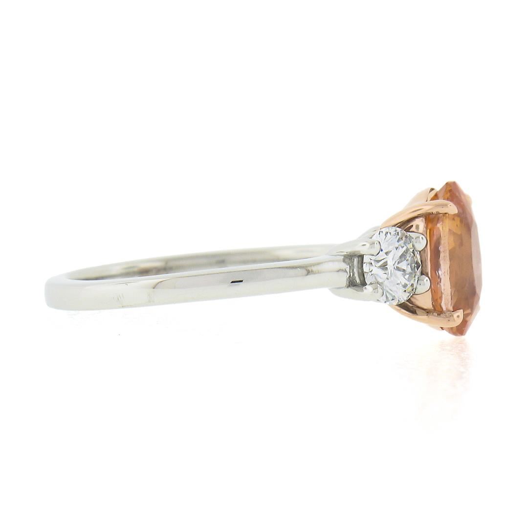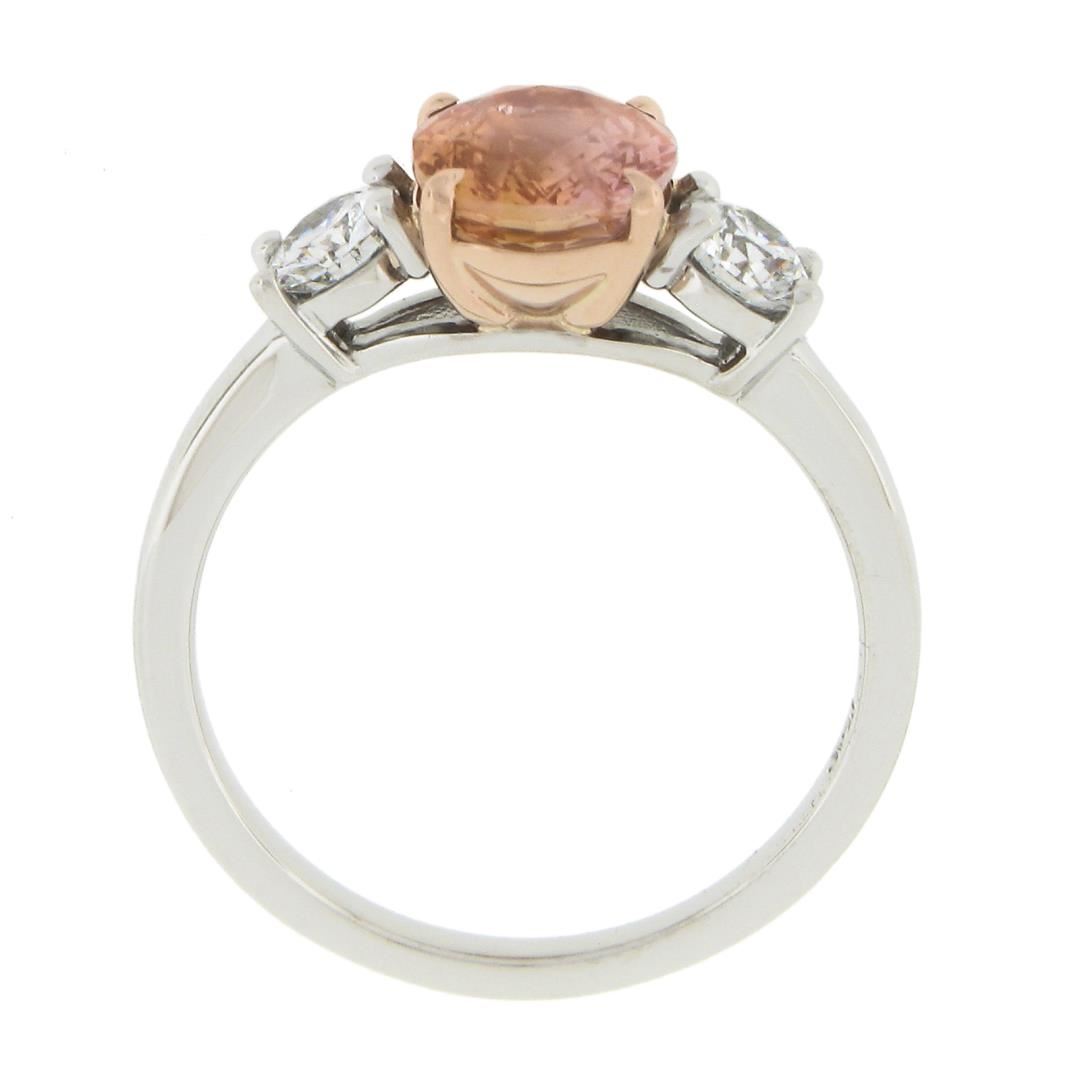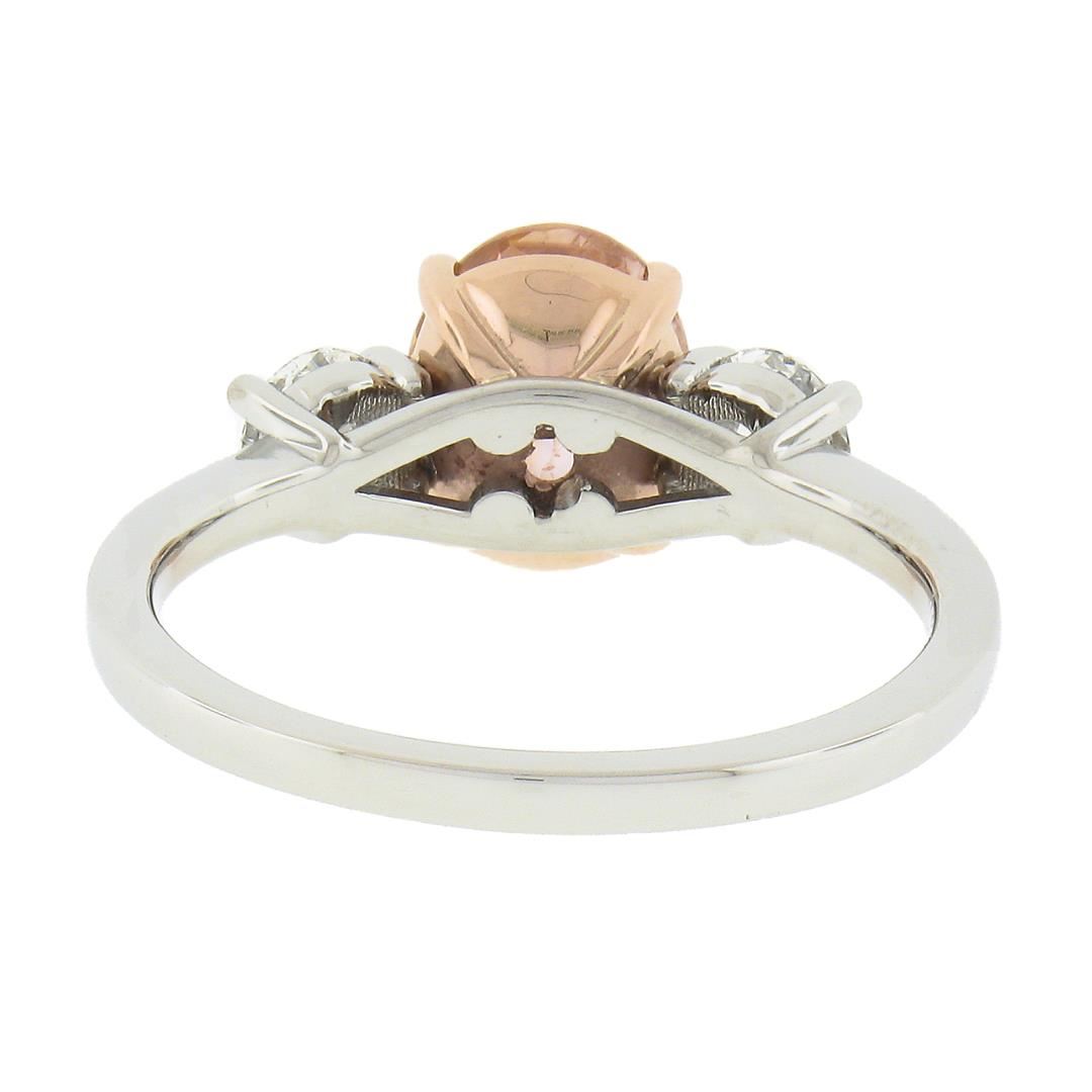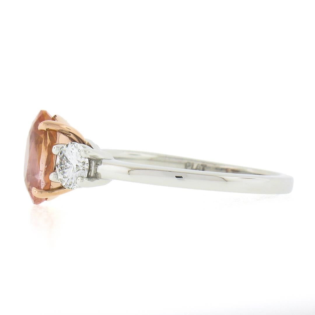A new solid platinum & 14k rose gold ring, with 1 AGL graded oval cut natural orange sapphire (2.04ct ), and 2 round cut natural diamonds (F/G - VS1/VS2 ; 0.50ctw). The ring is size 6.5, weighs a total of 4.42 grams, and measures 8.4mm wide. Comes with all original relevant certifications.