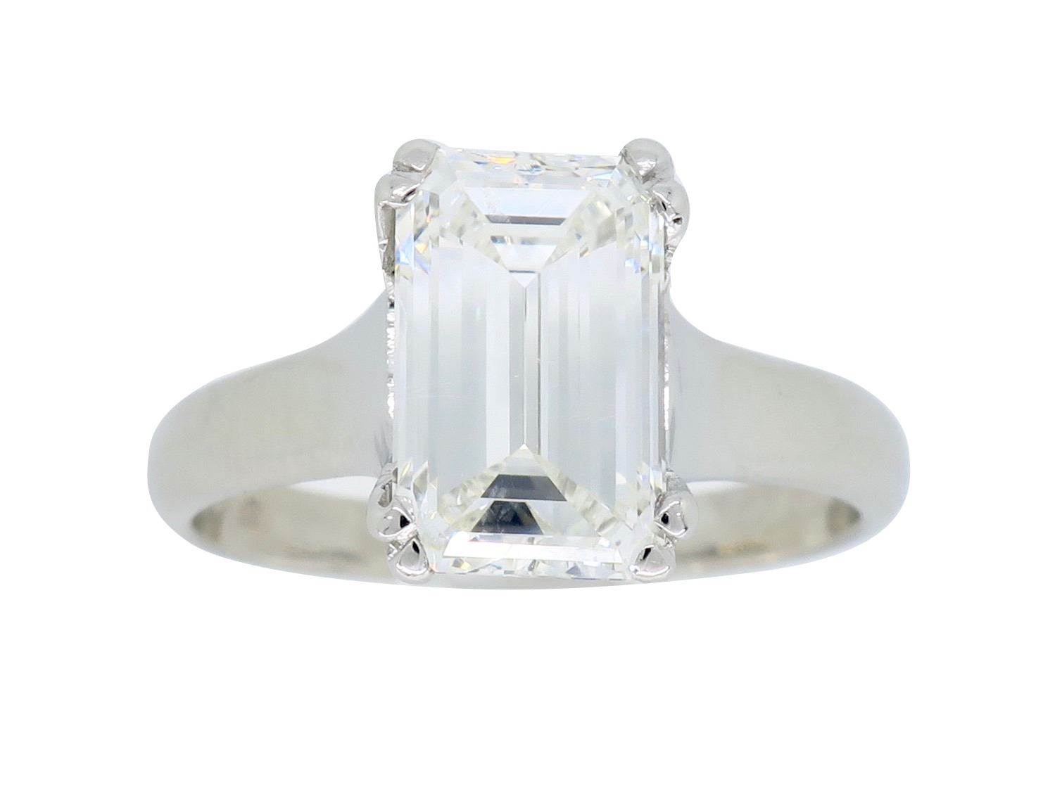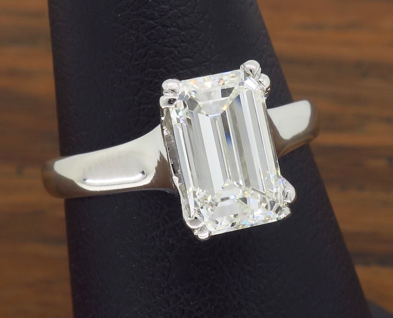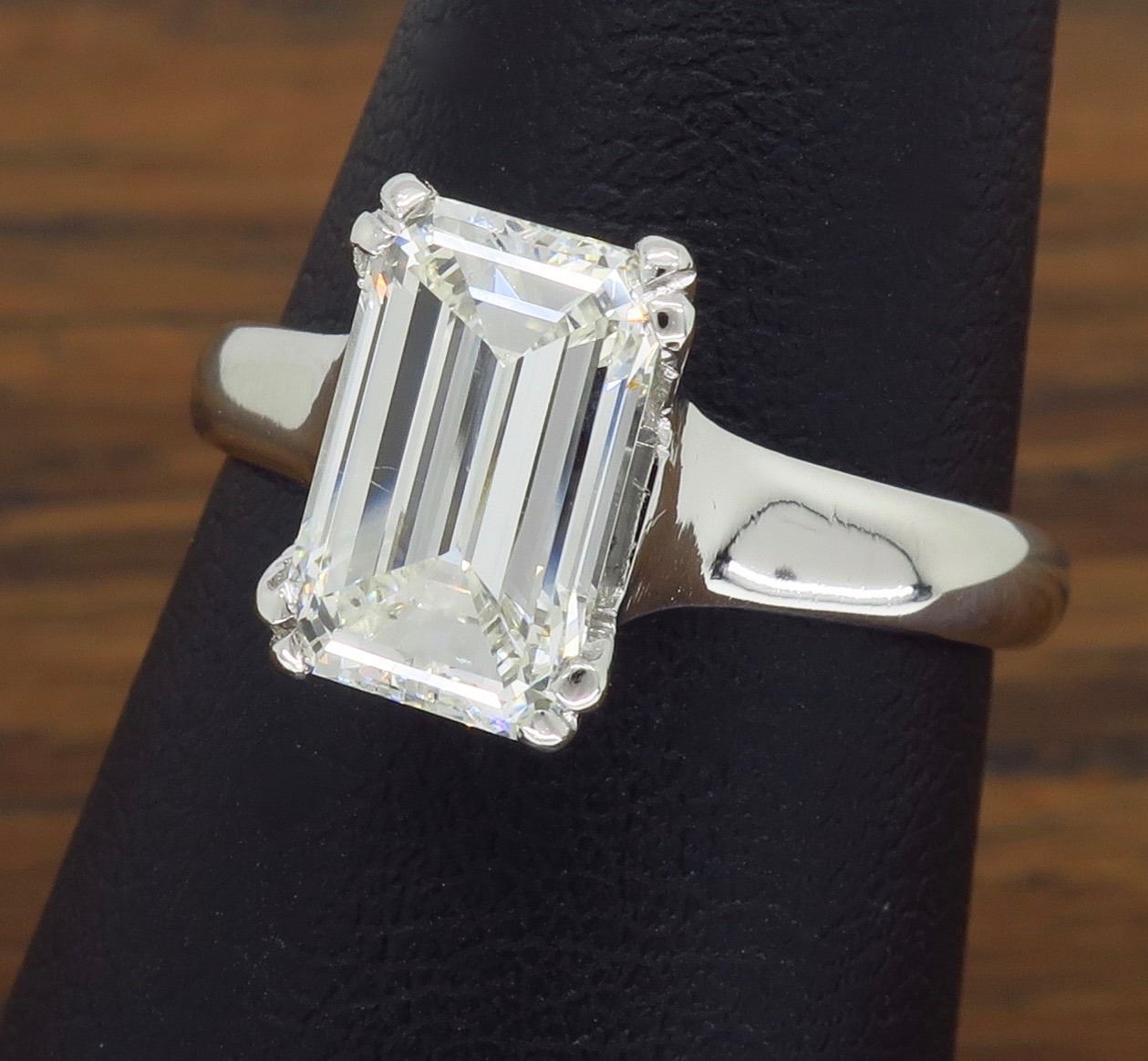 One Platinum 2.00ct Emerald Cut Diamond Ring. (1) Emerald cut Diamond with a total weight of 2.00cts with a color of I-J and clarity of Si-2. Total weight of this ring is 4.7 grams. Ring size is 5.5.