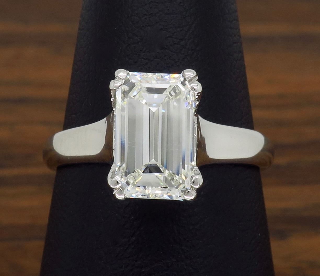 One Platinum 2.00ct Emerald Cut Diamond Ring. (1) Emerald cut Diamond with a total weight of 2.00cts with a color of I-J and clarity of Si-2. Total weight of this ring is 4.7 grams. Ring size is 5.5.