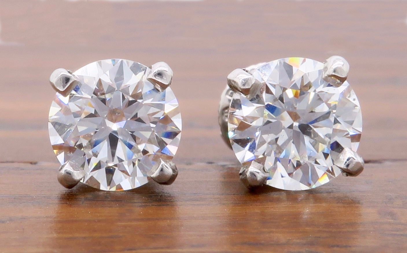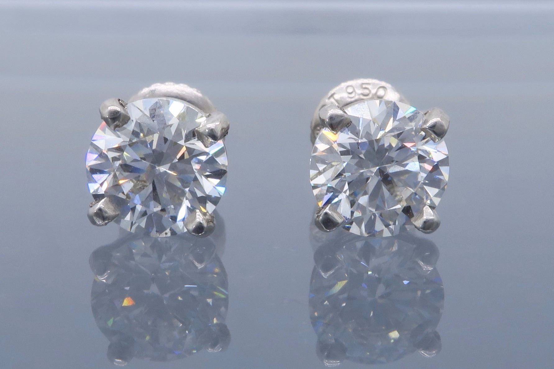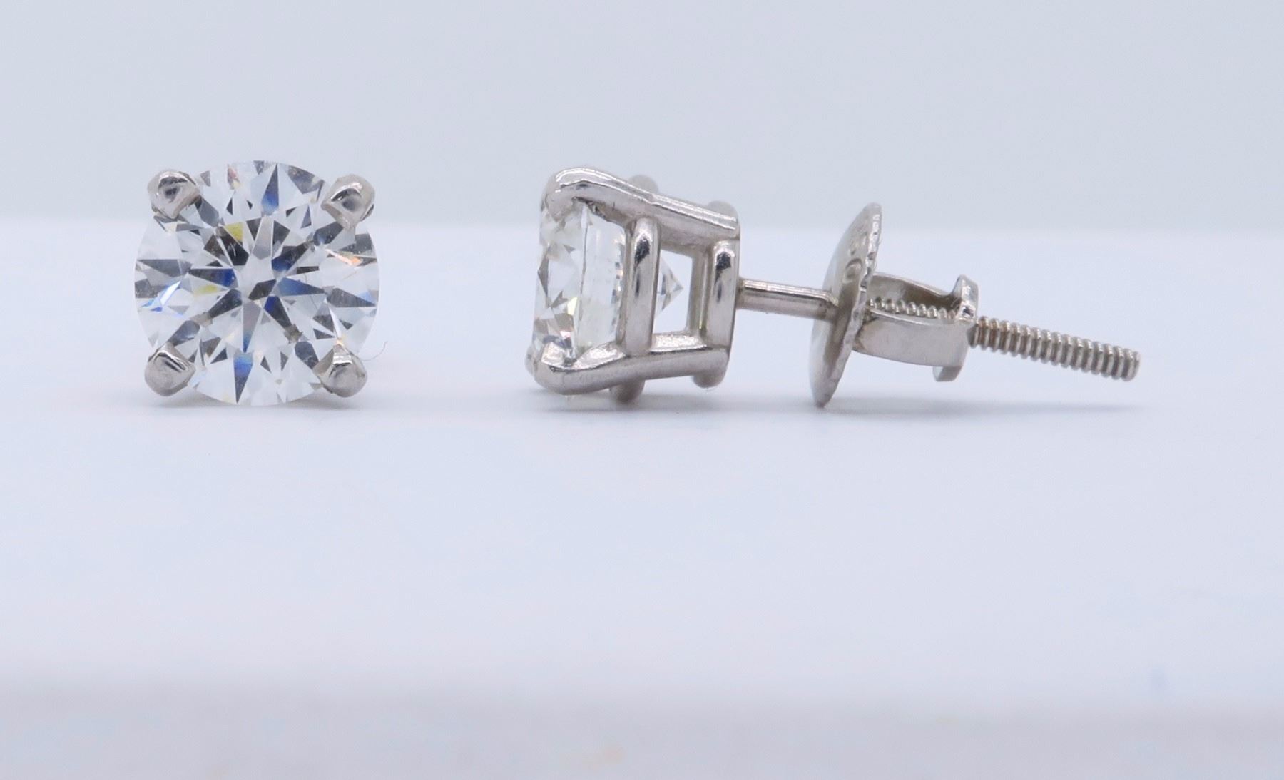 One pair of Platinum 2.07ctw Diamond Stud Earrings. (1) Round Diamond with a total weight of 1.03cts with a color of G and clarity of SI-2. (1) Round Diamond with a total weight of 1.04cts with a color of G and clarity of SI-2. Total weight of these earrings is 2.9 grams.