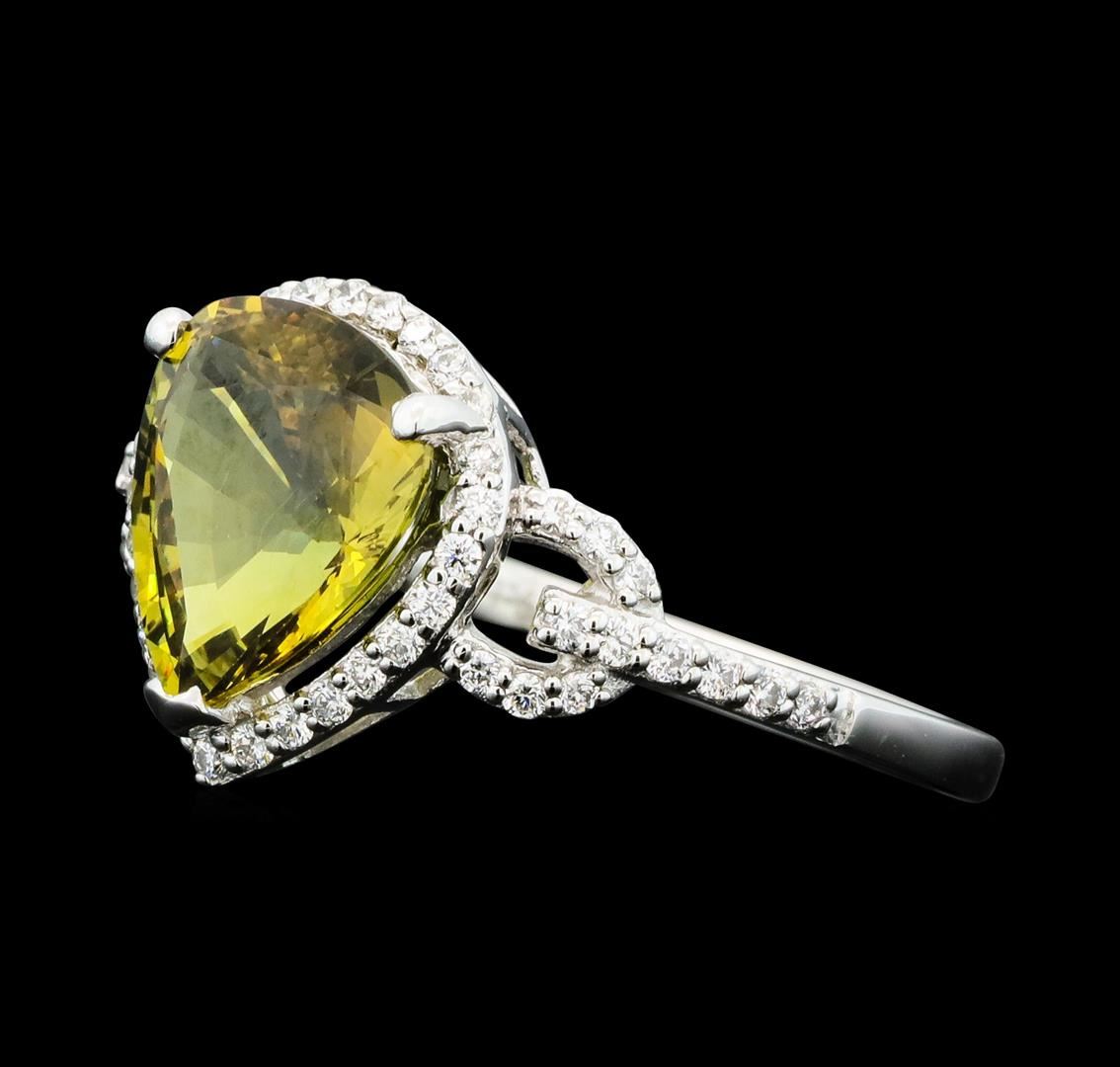 One electronically tested platinum ladies cast brown-yellow sapphire and diamond ring with a bright polish finish. The featured brown-yellow sapphire is set within a diamond bezel supported by stylized diamond set shoulders, completed by a one and one-half millimeter wide band. Trademark is A. I. Identified with markings of "PT950". Condition is new, good workmanship. Containing: One prong set pear modified mixed cut natural brown-yellow sapphire, measuring 9.74 x 8.31 x 4.66mm, exact weight 2.79ct. Clarity is eye clean, medium dark, very slightly grayish, brown-yellow color, (GIA BrY 6/3), cut is good. Transmitting light with no distortion, transparent. No indications of heating. GIA Gemological Report attached. Graded loose prior to setting in the GIA Laboratory, Report #2237780059.Fifty-One prong set round brilliant cut diamonds approximate total weight of 51 Stones = 0.28ct. Graded in the setting. Clarity: VS-1 to VS-2. Color: D - F. Total Weight of Colored Stones 2.79ct. Total Weight of Diamonds 0.28ct. Total Weight of Ring 4.32gm. AIG Appraised.