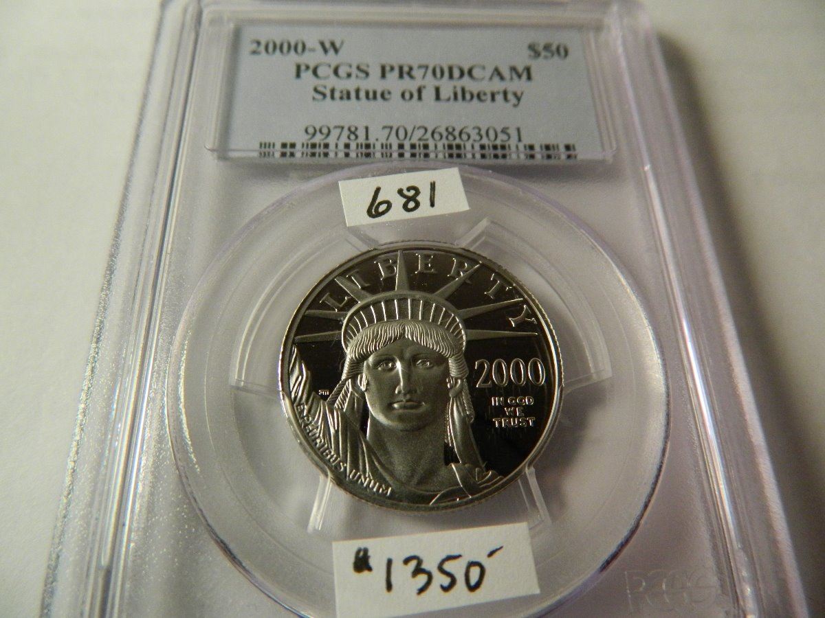 Platinum 2000-W $50 Statue of Liberty, PCGS PR70DCAM, 1/2 Ounce Platinum, expected hammer $1350