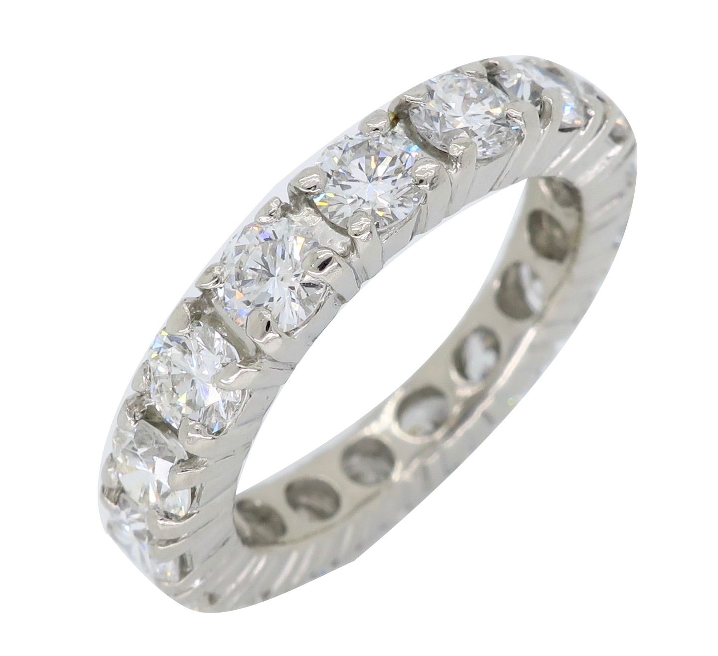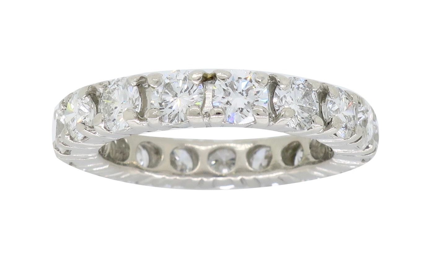 One Platinum 3.00ctw Diamond Ring. Round Diamonds with a total weight of 3.00cts with a color of G-H and clarity of VS-2 to SI-2. Total weight of this ring is 7.7 grams. Ring size is 6.5.
