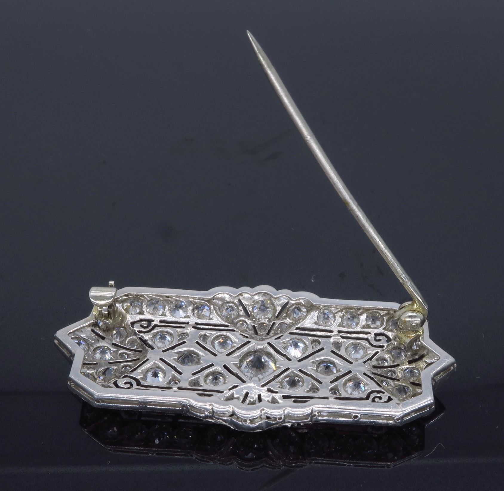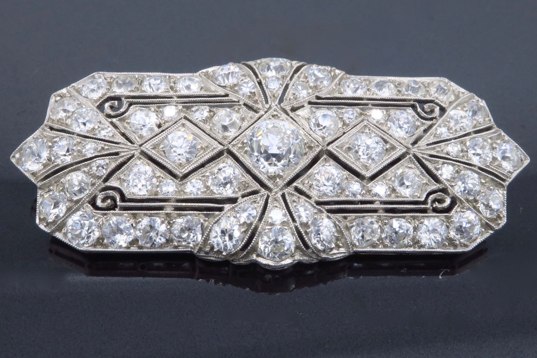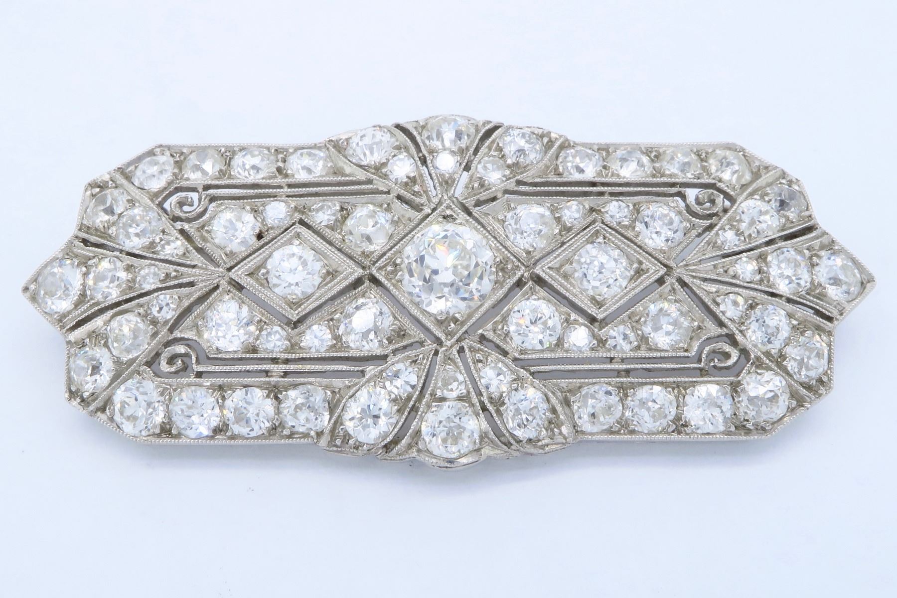 One Platinum 4.15ctw Diamond Brooch. Diamonds with a total weight of 4.15cts with a color of G-I and clarity of VS-2 to SI-2. Total weight of this brooch is 8.5 grams. Brooch shows wear consistent with age and use.