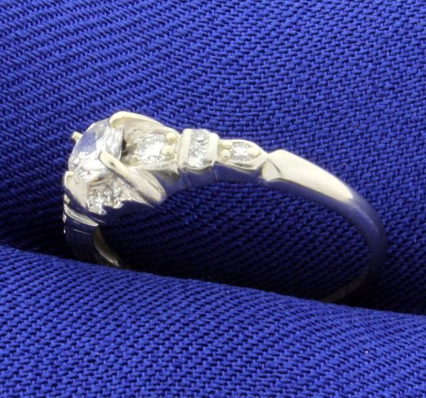 The center diamond is .25ct, surrounded by two .05ct and ten .01ct diamonds, all very high quality VS clarity/G color. Size 5 2.4g