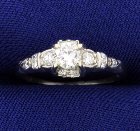The center diamond is .25ct, surrounded by two .05ct and ten .01ct diamonds, all very high quality VS clarity/G color. Size 5 2.4g