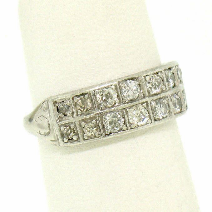 One Antique Art Deco Platinum .65ctw European & Single Cut Diamond Etched Band Ring. Item Details: Material: Solid .900 Platinum, Weight: 3.10 Grams, Stone(s): (16) Natural Genuine Diamonds - Round Single and European Cut - Prong Set - F/G Color - VS2/SI1 Clarity, Total Carat Weight: 0.65 (approx.), Ring Size: 5.0 (We can custom size this ring.), Ring Width: 6.25mm, Ring Height: 2.44mm rise off the finger, Condition: Antique, art deco period piece - Great condition - Ready to Wear.