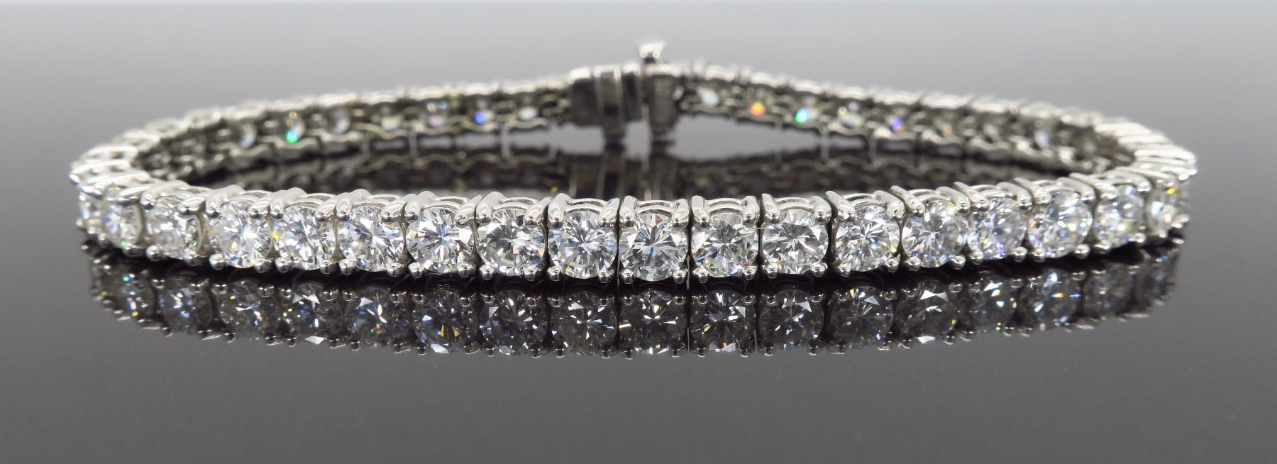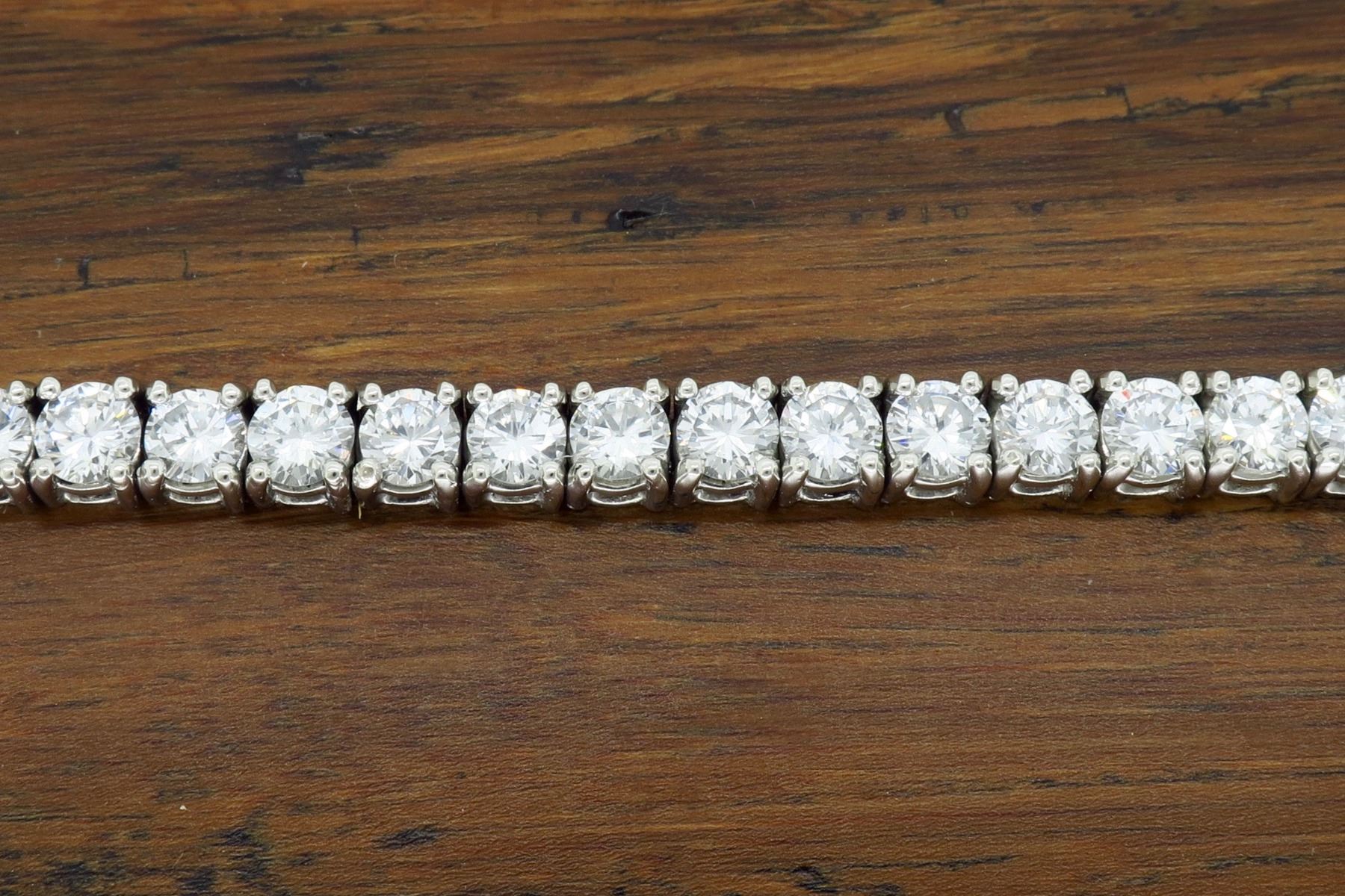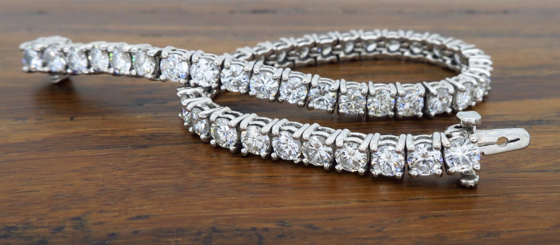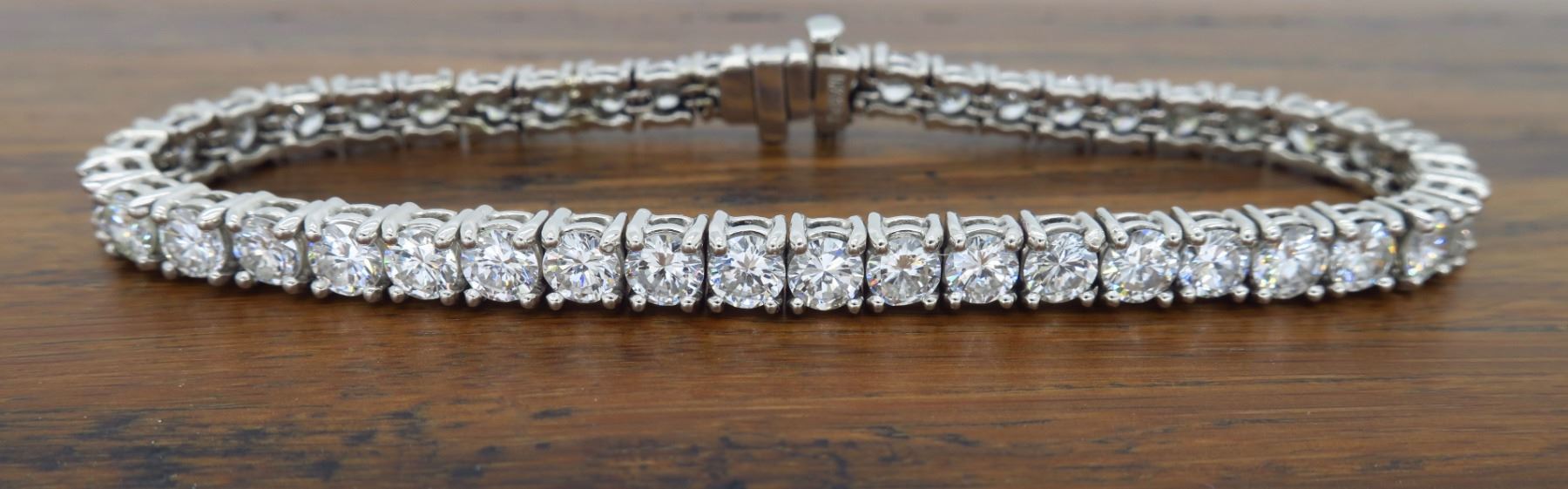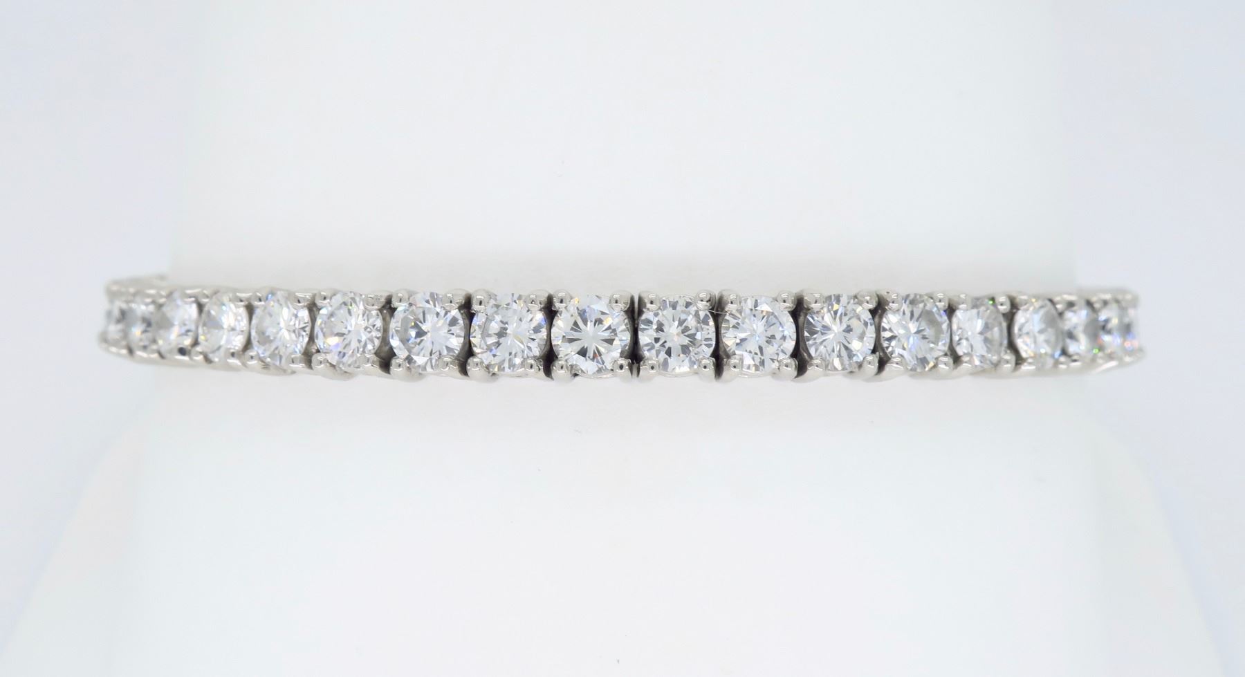 One Platinum 9.00ctw Diamond Bracelet. (44) round Diamonds with a total weight of 9.00cts with a color of F-H and a clarity of VS-2. Total weight of this bracelet is 19.5 grams. Bracelet length is 7 inches.