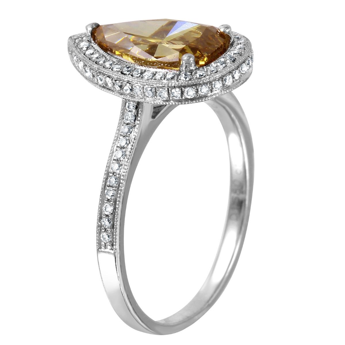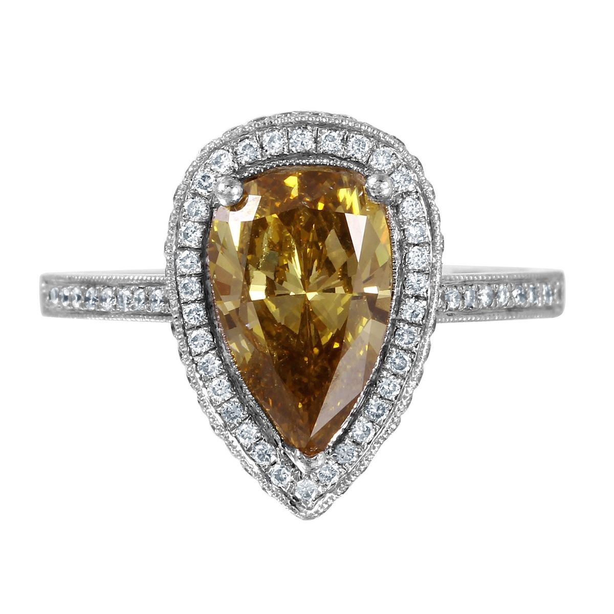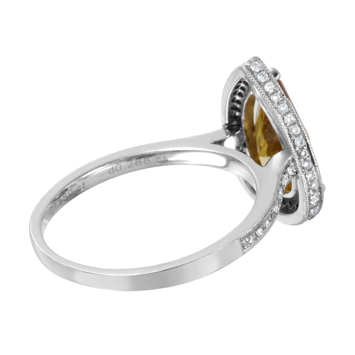 One stamped & tested platinum ladies combination cast & assembled diamond engagement ring with a bright polish finish. Size 6.5. Identified with markings of "PT900". Condition is new. Containing: One prong set pear shaped cut diamond, measuring 10.70 x 6.50 x 3.60mm (depth est.) approximate weight of 1.68ct. Clarity: SI-1, Cut is Good. Ninety-Nine prong set round brilliant cut diamonds, measuring 0.08 - 0.08 x 0.05mm (depth est.) approximate. Total Weight of 99 Stones = 0.28ct. Clarity: SI-1. Color: F - G, Cut is Very Good. Approximate Total Weight of Diamonds 1.96ct. Total Weight of Engagement Ring 4.36gm. Ring Size 6.5. The descriptions listed should not be construed as an appraisal. The detail is provided as a guideline for color, clarity, weights and measurements to the best of our ability. We welcome inspections. WE SHIP WORLDWIDE!