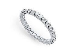 An endless circle of diamonds conveys a sense of no beginning or end a symbol of your eternal love. Brilliant-cut round diamonds are prong-set in a rich platinum mounting. This eternity band has a total diamond weight (TDW) of 0.75 ct.