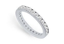 An endless circle of diamonds conveys a sense of no beginning or end a symbol of your eternal love. Brilliant-cut round diamonds are channel-set in a rich platinum mounting. This eternity band has a total diamond weight (TDW) of 0.75 ct.