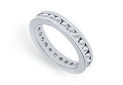 An endless circle of diamonds conveys a sense of no beginning or end a symbol of your eternal love. Brilliant-cut round diamonds are channel-set in a rich platinum mounting. This eternity band has a total diamond weight (TDW) of 1.50 ct.