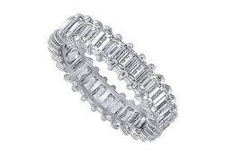 An endless circle of diamonds conveys a sense of no beginning or end a symbol of your eternal love. Baguette diamonds are prong-set in a rich platinum mounting. This eternity band has a total diamond weight (TDW) of 4.00 ct.