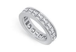 An endless circle of diamonds conveys a sense of no beginning or end a symbol of your eternal love. Princess-cut diamonds are channel-set in a rich platinum mounting. This eternity band has a total diamond weight (TDW) of 5.00 ct.