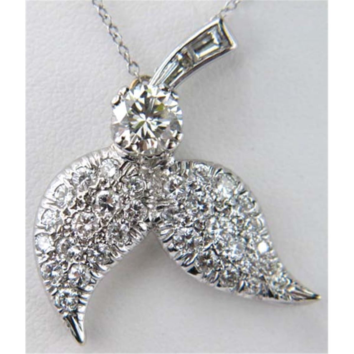Platinum Diamond Necklace. The total weight of the necklace is 4.6 grams. The weight of the diamond is 3.5 cts approximately, G color SI clarity. The length of the necklace is 16" long.
