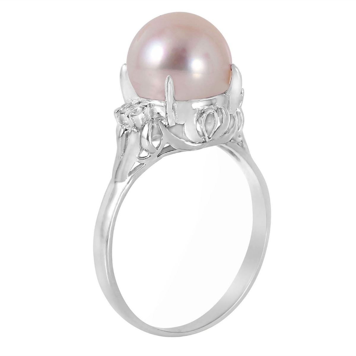 One stamped & tested platinum ladies South Sea pearl and diamond ring with a bright polish finish. Identified with markings of "PT 900". Condition is very good. Containing: One south sea cultured pearl, 8.5mm in size. The pearl is cream in color with a very good luster, round, lightly blemished. Four prong set round brilliant cut diamonds, measuring 1.30 - 1.30 x 0.78mm (depth est.) approximate total weight of 4 Stones = 0.04ct. Clarity of SI, Color of I - J. Approximate Total Weight of Diamonds 0.04ct. Total Weight of Ring 4.00gm. Ring Size 5. The descriptions listed should not be construed as an appraisal. The detail is provided as a guideline for color, clarity, weights and measurements to the best of our ability. We welcome inspections. WE SHIP WORLDWIDE!