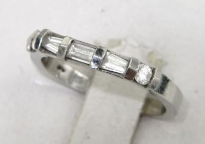 Platinum Diamond Ring. The total ring's weight is 4.8 grams. The total weight of diamonds: 0.31 cts., approximately. H - I color VS - SI clarity. The size of the ring is 6.25. The ring is 2 mm wide.