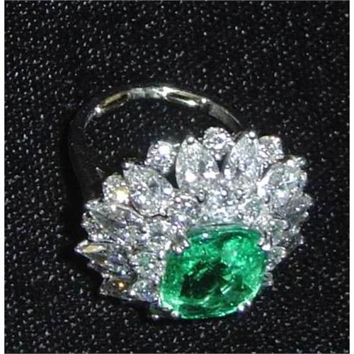 Platinum Diamond and Emerald Ring. Circa. 1960
