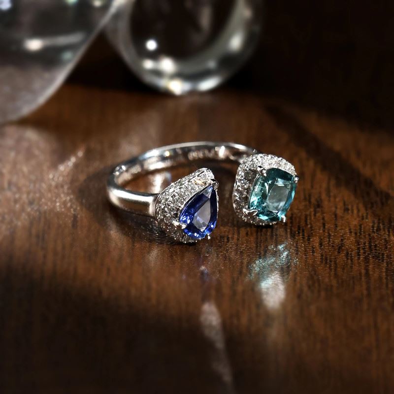 This platinum double-stone ring uniquely combines a blue gemstone and an aquamarine, surrounded by exquisite diamonds, radiating brilliance. The classic dual-stone design symbolizes balance and harmony, perfectly embodying luxury and elegance. Whether for everyday wear or as a highlight for special occasions, this ring will be a stunning focal point.Ring size: 6, circumference: 53 mm, diameter: 17 mm, total weight: 6.2g.Note: GUILD certificate, comes with a jewelry, gemstone, and precious metal authentication certificate.