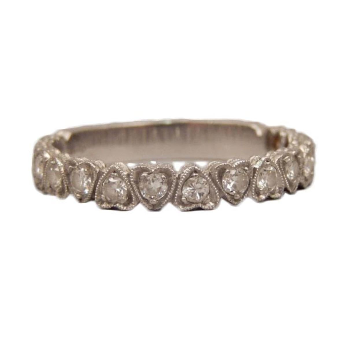 Platinum eternity band, fifteen alternating hearts, each with center .2 point diamond, unmarked, tests platinum, size 7 3/4 2.4 dwt/3.8 grams complete Condition Report: No visible defects