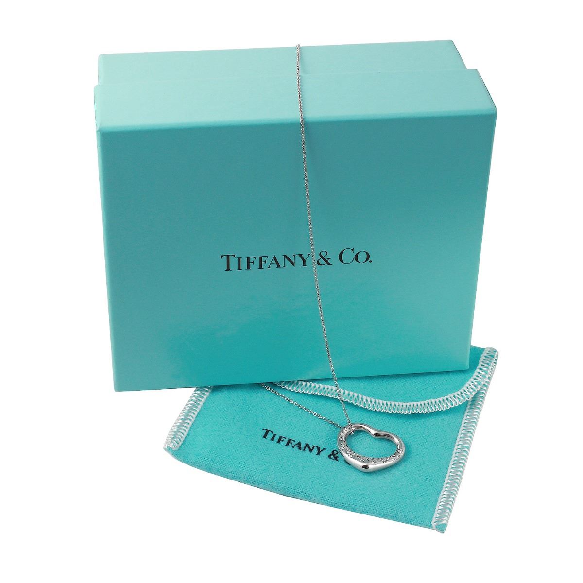 One stamped & tested platinum ladies cast Tiffany & Co. Elsa Peretti Open Heart Pendant and Chain 16.5" long, with a spring ring clasp with a bright polish finish. Signed: Tiffany & Co Elsa Peretti PT950 on pendant, TIFFANY & CO PERETTI PT950 in chain. Identified with markings of "PT950". Condition is very good. Containing: Twenty-Seven prong set round brilliant cut diamonds, measuring 1.50 - 1.30 x 0.84mm (depth est.) approximate total weight of 27 Stones = 0.27ct. Clarity: VS-1. Color: E - F, Cut is Excellent. Approximate Total Weight of Diamonds 0.27ct. Total Weight of Heart Pendant And Chain 9.00gm. The descriptions listed should not be construed as an appraisal. The detail is provided as a guideline for color, clarity, weights and measurements to the best of our ability. We welcome inspections. WE SHIP WORLDWIDE!