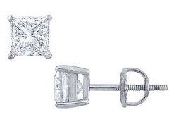 A pair of perfectly matched princess-cut diamonds are set in a rich platinum 4-prong mounting. These diamond stud earrings have a total weight (TDW) of 1.75 ct and are available in either screw-back or push-back. The TDW includes the combined weight of both diamonds.