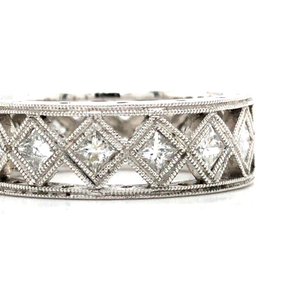 ADDITIONAL INFORMATION: A wide, reticulated platinum band features princess-cut diamonds in a lattice pattern that completely encircle the finger.
