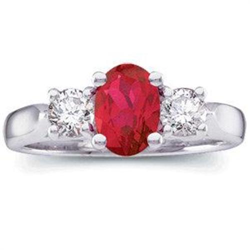 This PLATINUM ring features a very beautiful Genuine Oval RUBY = ONE CARAT! There is a sparkling Diamond set either side, and the Diamond Total Weight = .40 CARATS!This Platinum ring can worn as a Ruby and Diamond ENGAGEMENT ring as well as a Ruby and Diamond WEDDING BAND. It is in Pristine condition and I highly recommend it to you.