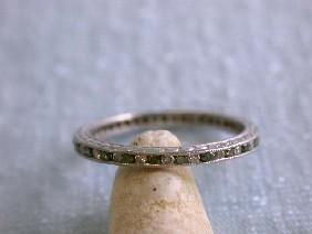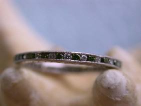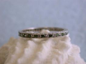 Platinum Eternity Ring with diamonds - White and Green, 0.60 carat. The ring size is 6 and the width is approximately 2.2 mm and the weight is 2.1 grams