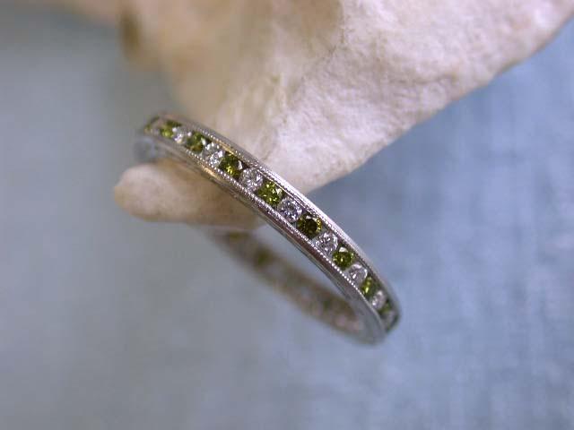 Platinum Ring w/ Diamonds. This is a platinum ring with 0.60 carat green and white diamond. The size of this is 6 and the width is approximately 2.1 mm and weighs 1.9 grams.