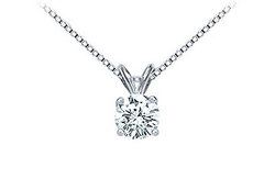 A round diamond is delicately suspended in a rich platinum 4-prong mounting. This diamond solitaire pendant has a total weight (TDW) of 1.00 ct and comes with a standard 16 14K white gold chain.