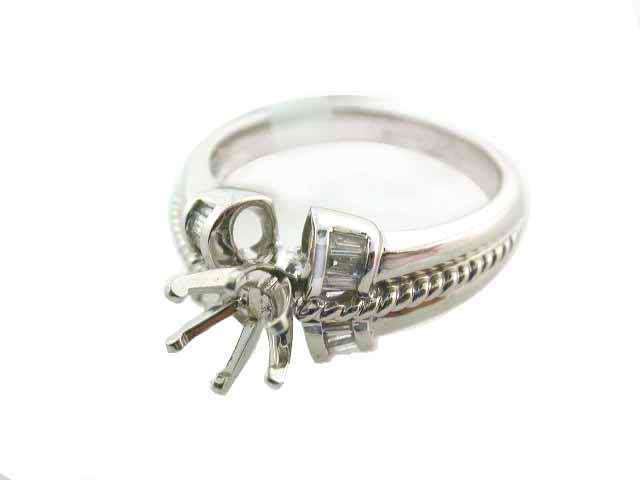 Platinum Semi-mount Ring with Accent Diamond - 0.12 ct, Baguettes cut. The ring size is 6.75 and weighs 7.06 grams