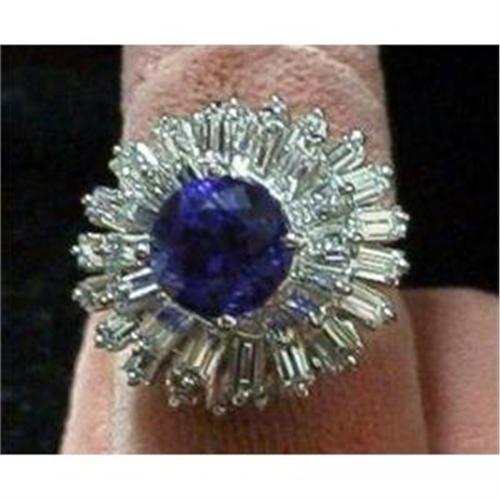 This is one gorgeous splash of color and brillance. The tanzanite measures 2.04 carats and is a lovely shade of royal blue. The mounting is in platinum which spells quality and it has 3 carats of clean white baguette diamonds.Mother's day is near buy it she will love it.