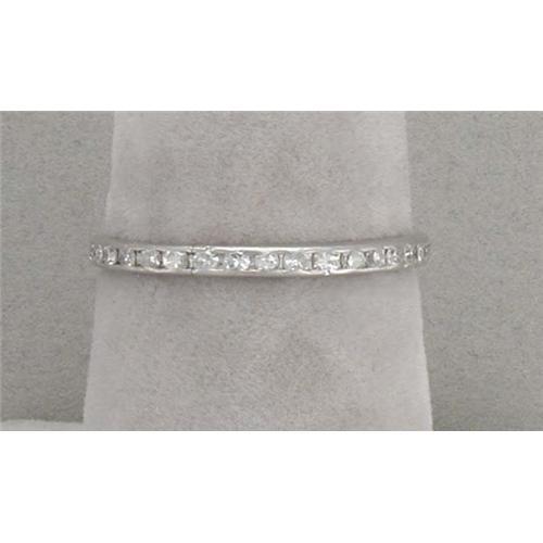 Simple and elegant, this platinum eternity band is set with 35 single-cut diamonds estimated to weigh a total of 1/2 carat. It is a size 7 1/2 and weighs 1.4 grams.