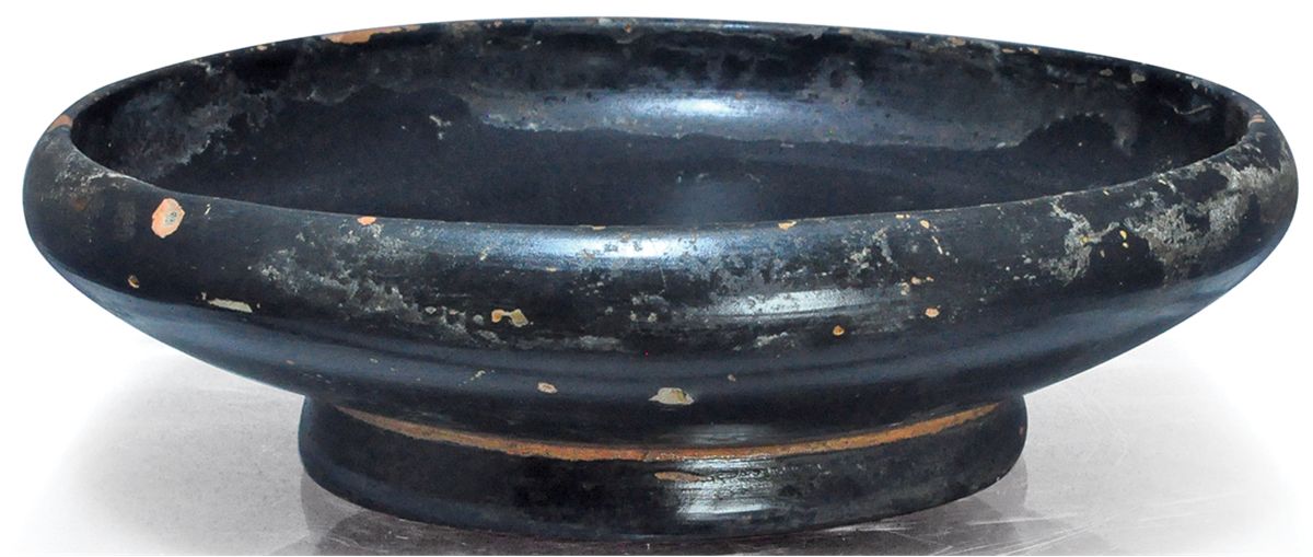 Plato. Campania (siglo IV a.C.). Cerámica de barniz negro. Presenta decoración estampillada. Altura 6,0 cm. Diámetro 18,8 cm.