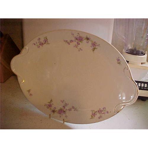 Platter,china,austriian,embossed handles, purple flowers & grapes, gold trim;1" X 16.75; handle to handle, beautiful, (c) 1900's