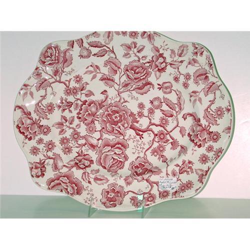 Johnson Bros. platter in Chippendale pattern with florals of deep red and rose colors, 15 3/4" X 13 1/2"