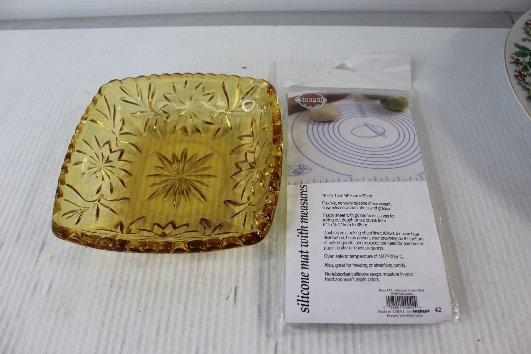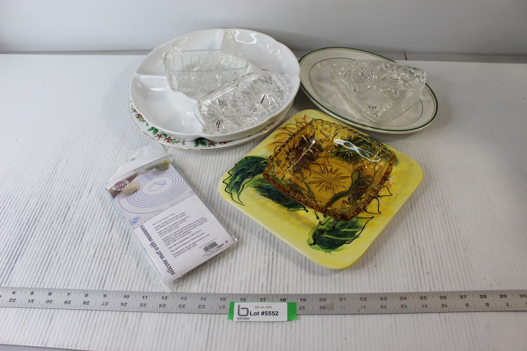 Platters, Divided Serving Platter, Glass Butter Dish, Footed Glass Candy Dish, Yellow Glass Dish, Silicone Mat With Measures