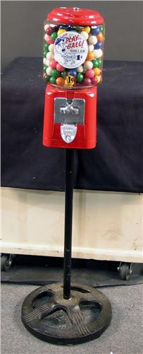 Play Ball 1 cent Bubble Gum vendor machine on cast iron stand 43" high