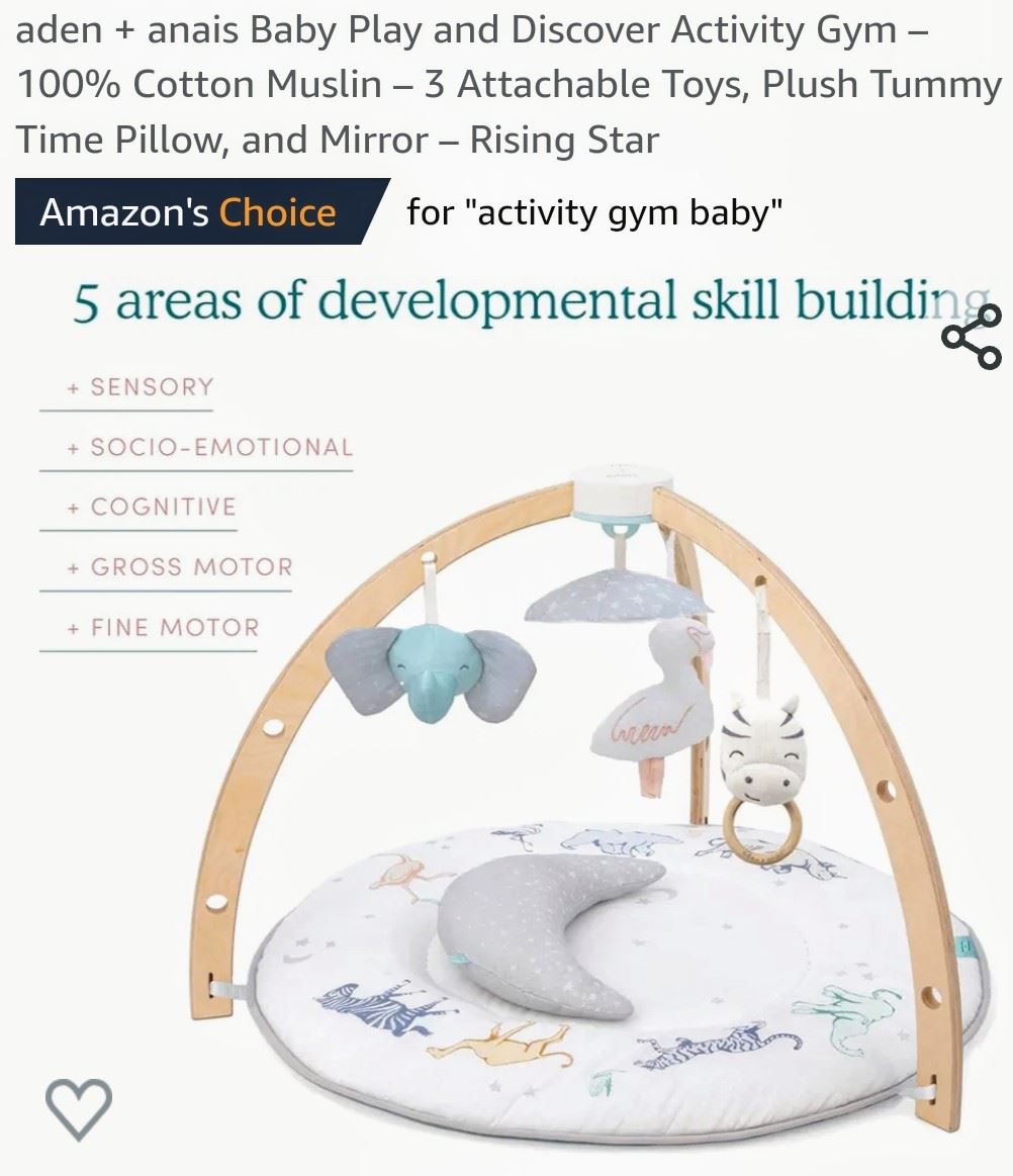 Wooden baby activity gym, includes hanging toys and mirror, promotes developmental skills, new.