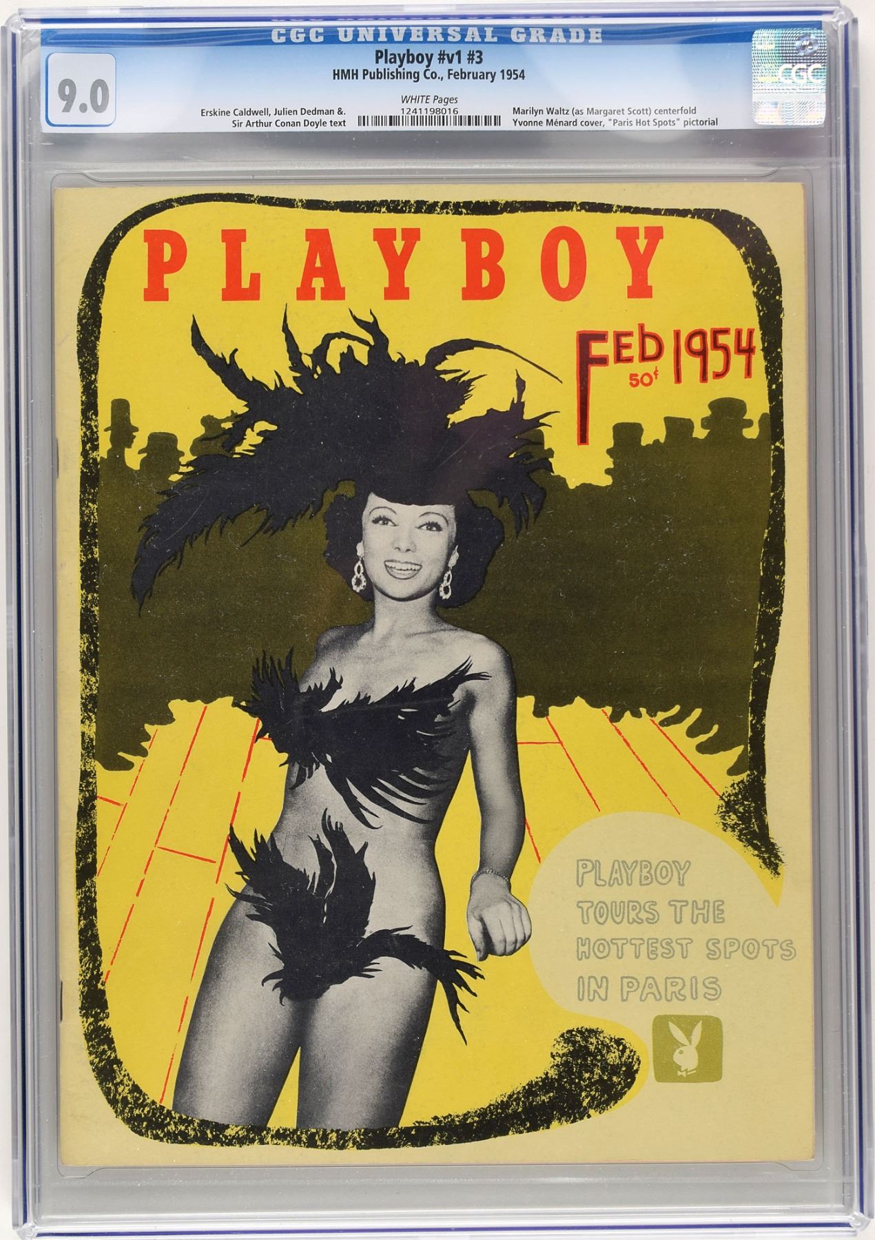 Playboy #3 (HMH Publishing Co., February 1954) - CGC Universal Grade 9.0 - white pages - featuring a Marilyn Waltz (as Margaret Scott) centerfold and a Yvonne Menard cover. The CGC census records seventeen examples at this grade or higher.
