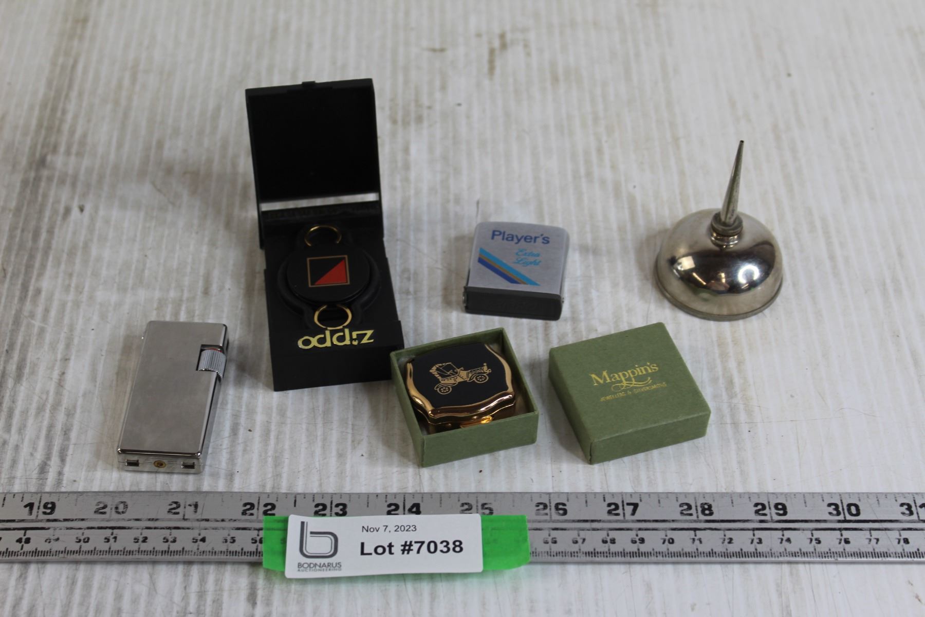 Player's Extra Light Tape Measure, Miniature Oil Can, Mappin's Miniature Ashtray, Misc.