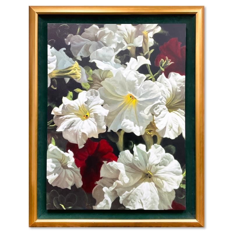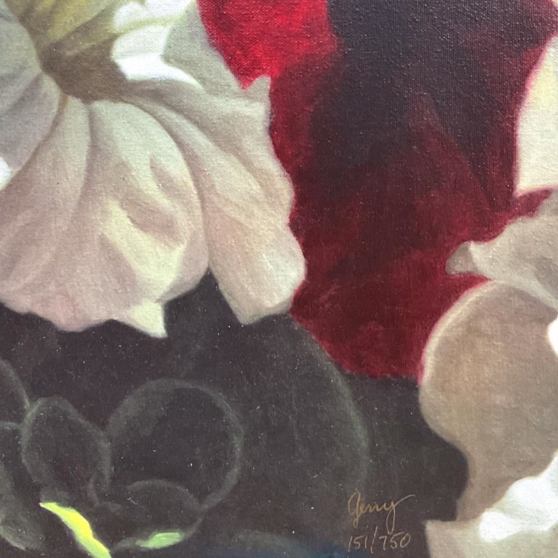 "Playful Pleasures" is a limited edition giclee on canvas by by Michael Gerry, numbered 151/750 and hand signed by the artist. This piece comes framed. Includes Letter of Authenticity. Measures approx. 48.5" x 38.5" (frame), 40" x 30" (image). There is some wear on the frame.
