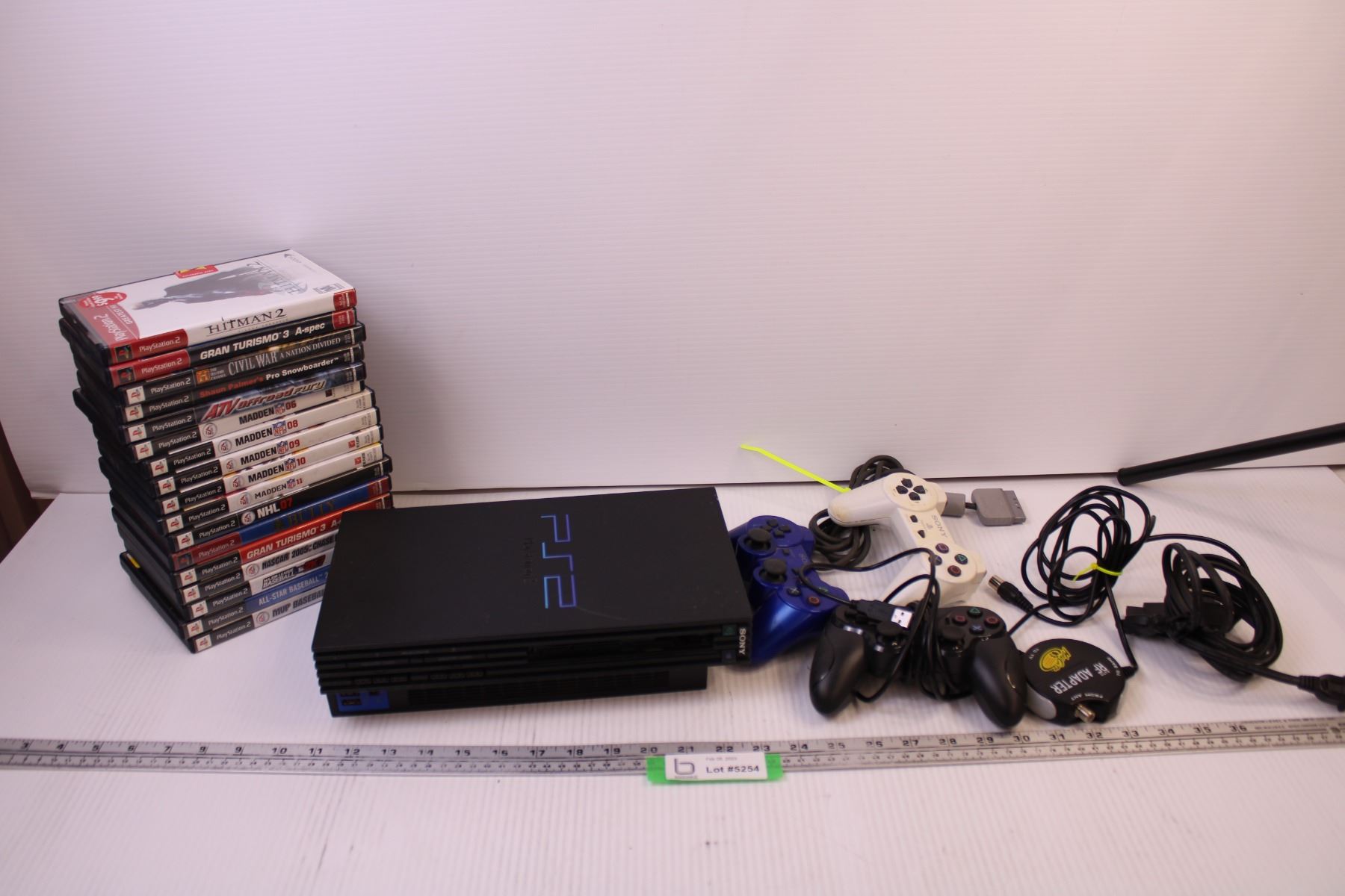 Playstation 2 Bundle (Consol (Powers on), 3-Controllers, 17-Games, and Cables)