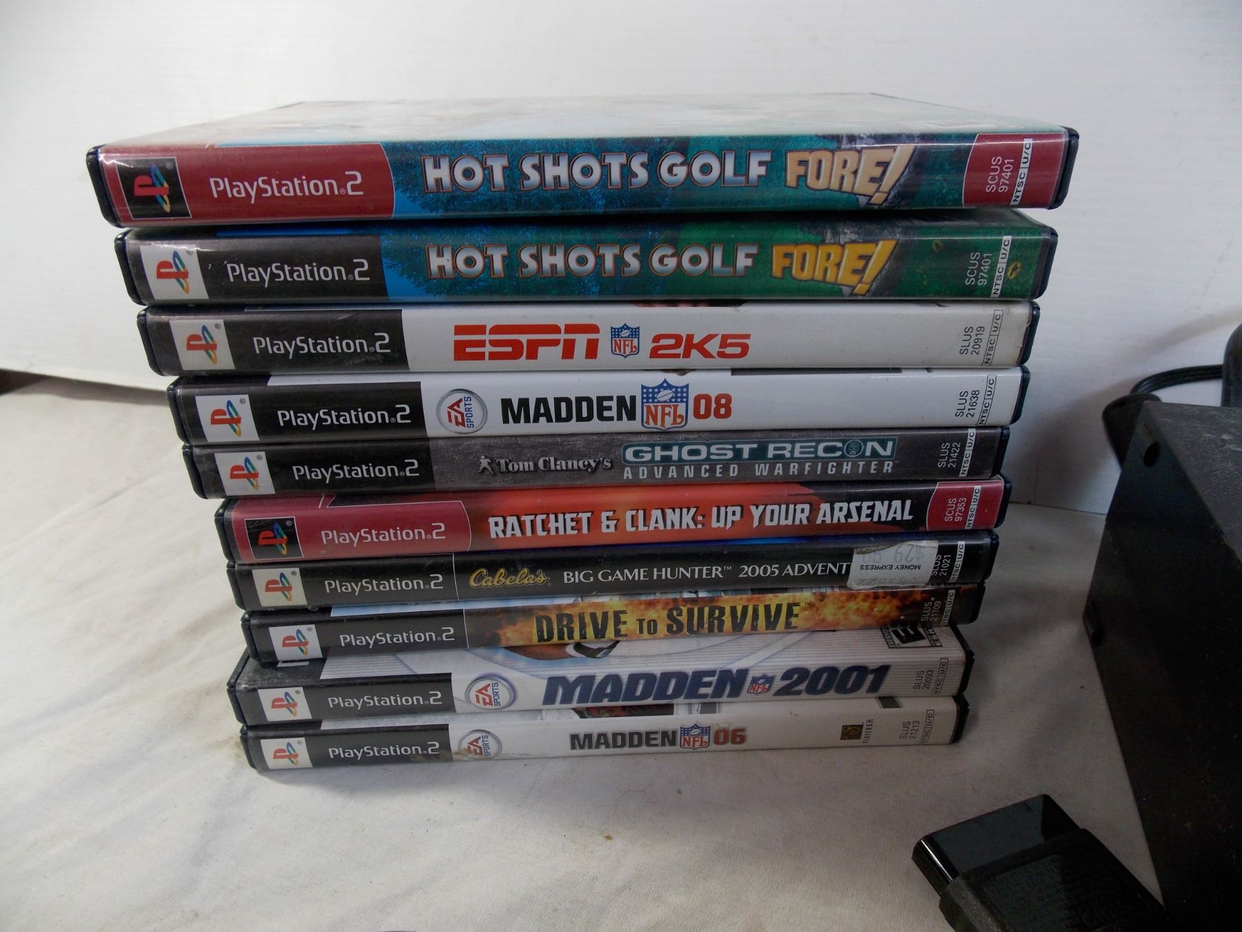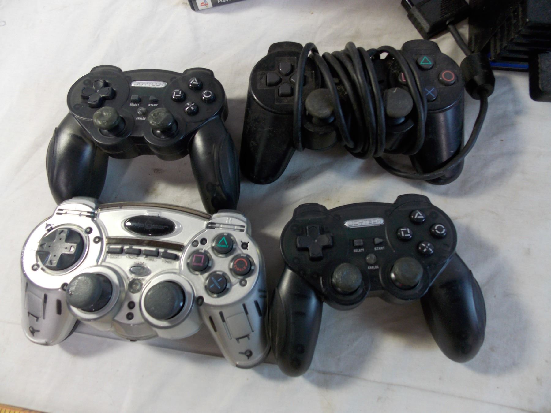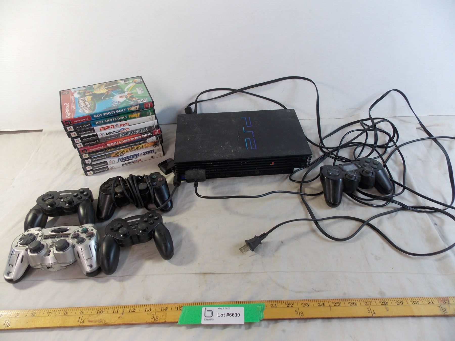 Playstation 2 with 10 games, aftermarket controllers (dirty) - untested