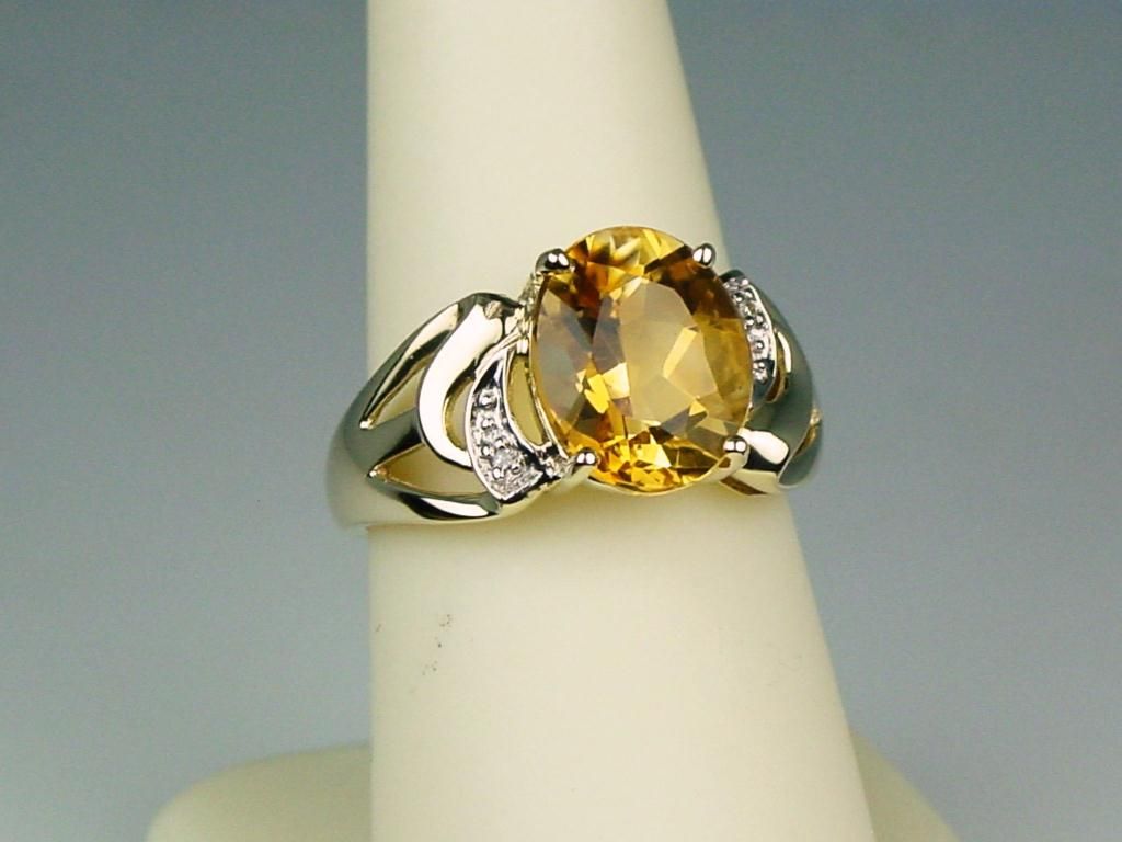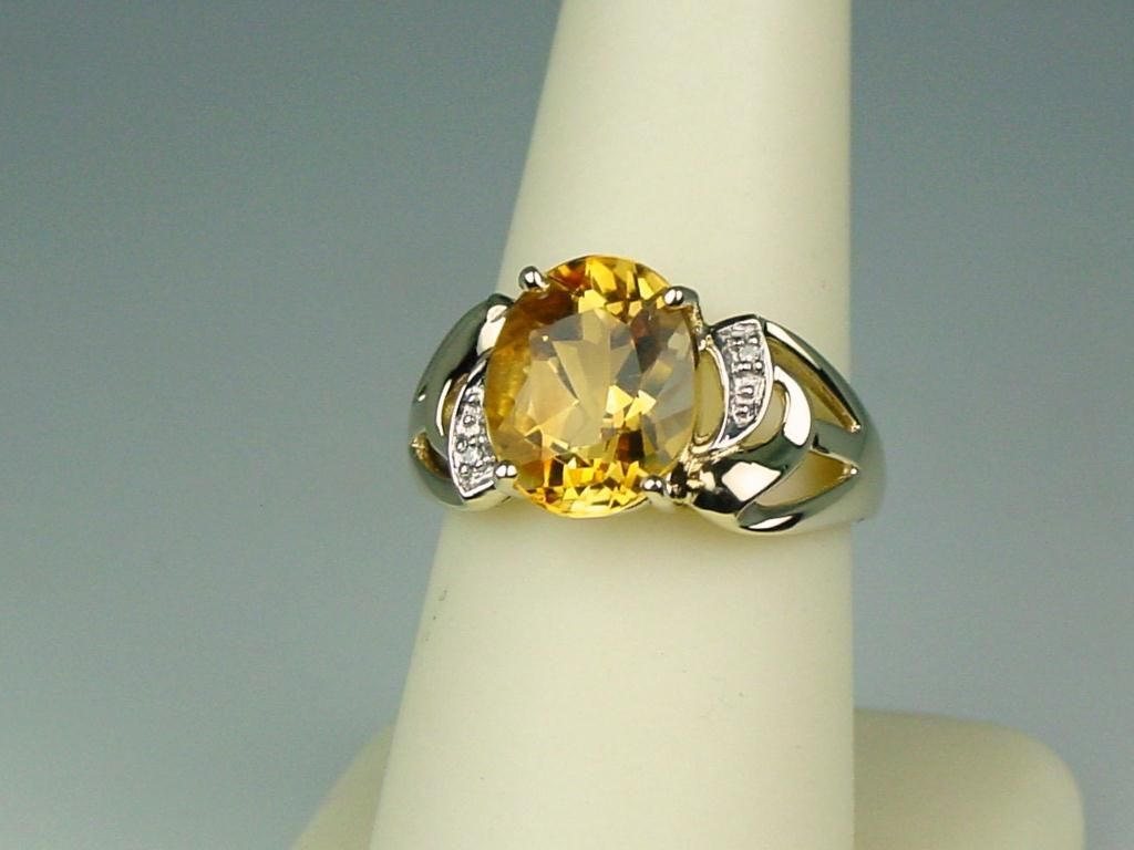 Pleasant 10K Yellow Gold Ladies RingSet with an oval Citrine weighing 3.52 carats and side diamonds. Retail $995