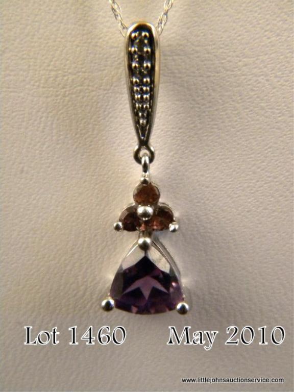 Pleasant 14 karat white gold ladies pendant set with Amethyst, pink tourmaline and pave set diamonds. Retail $650.00 Estimate $100-$200