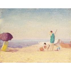Pleasant Ray McIntosh (American, b. 1897 ), “The Dunes, Indiana”, c. 1930; oil/board, 16” x 20”, unsigned; accompanied by a letter from the artist’s son, Stuart McIntosh, authenticating it. McIntosh lived in Peoria. He studied at the Art Institute of Chicago and exhibited at the Hoosier Salon (1927).